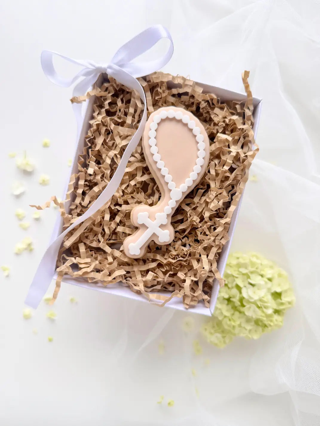 Ob als Keks, Fondantaufleger oder Teil eines Segensgeschenks – der Rosenkranz eignet sich ideal für persönliche, festliche Gestaltungen mit bleibender Bedeutung.